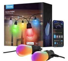 Govee Smart Outdoor String Lights H7015, 48ft RGBIC Outdoor Lights with 15 Dimmable LED Bulbs, IP65$25Arlington, TX