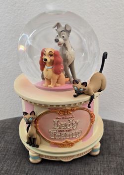 Disney Lady & The Tramp Bella Notte 25th Anniversary Hatbox Musical Snowglobe Siamese Cats $250Placentia, CA