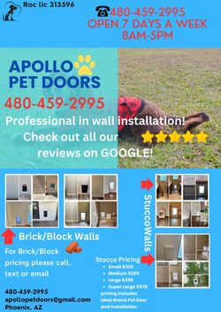 Apollo Pet Doors Licensed And Insured Doggie Door Installer $395Phoenix, AZ