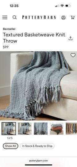 Unused Pottery Barn Textured Basketweave Knit Throw - Chambray Color$70Santa Monica, CA