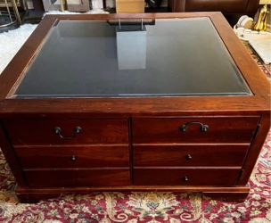 Hardwood table with glass top and a drawer$500Cincinnati, OH