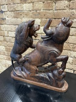 vintage wood carved lion and bull (tribeca manhattan)$50New York, NY