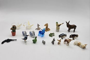 Mini Miniature Vintage Figures Set of 21 Porcelain Pewter Glass Iron. Condition is Used no damage . Lot come with case .
