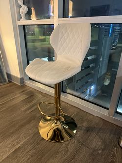 Modern Adjustable Bar Stool – White Quilted Upholstery with Gold Base – Swivel Counter Stool$90Charlotte, NC