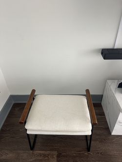 Modern Accent Chair with Ottoman – Upholstered Fabric Seat – Wood Armrests & Metal Frame$25Charlotte, NC