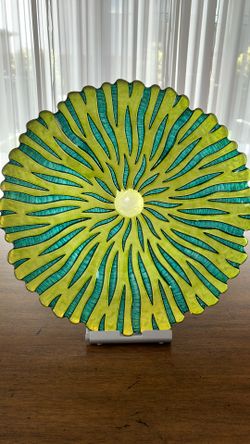 Mid-Century Style 13” Art Glass Platter – Vibrant Lime & Teal Sunburst Design$40Las Vegas, NV