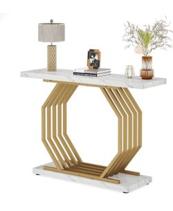 Gold Console Table, Faux Marble Entryway Table Narrow Sofa with Geometric Metal Base, 40 Inch Modern Accent Entrance for Living Room, Hallway, Foyer, $80Alta Loma, CA