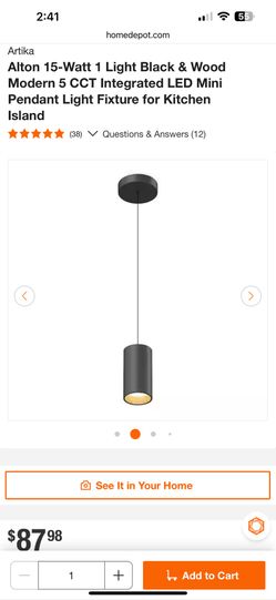 Artika Alton 15-Watt 1 Light Black & Wood Modern 5 CCT Integrated LED Mini Pendant Light Fixture for Kitchen Island$45Lakeside, CA