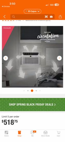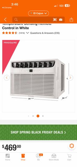 Frigidaire 15,100 BTU 115V Window Air Conditioner Cools 850 Sq. Ft. with Temperature Sensing Remote Control in White$279El Cajon, CA