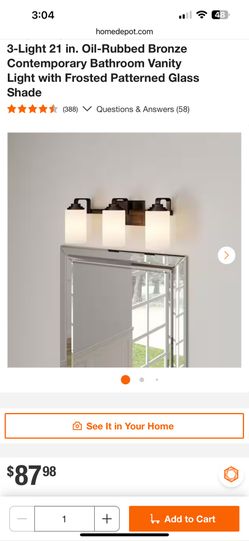 Hampton Bay 3-Light 21 in. Oil-Rubbed Bronze Contemporary Bathroom Vanity Light with Frosted Patterned Glass Shade$49Lakeside, CA