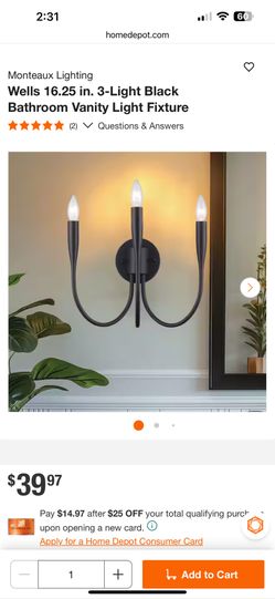 Monteaux Lighting Wells 16.25 in. 3-Light Black Bathroom Vanity Light Fixture$22Lakeside, CA