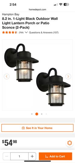 Hampton Bay 8.2 in. 1-Light Black Outdoor Wall Light Lantern Porch or Patio Sconce (2-Pack$29Lakeside, CA