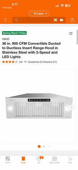 VIKIO 36 in. 900 CFM Convertible Ducted to Ductless Insert Range Hood in Stainless Steel with 3-Speed and LED Lights$155El Cajon, CA