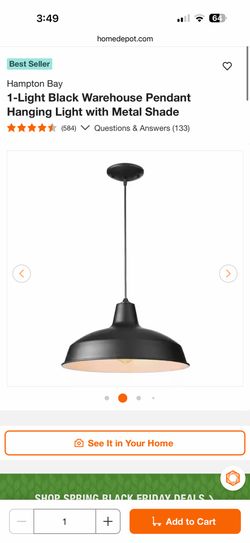 Hampton Bay 1-Light Black Warehouse Pendant Hanging Light with Metal Shade$17El Cajon, CA