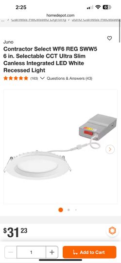 Juno Contractor Select WF6 REG SWW5 6 in. Selectable CCT Ultra Slim Canless Integrated LED White Recessed Light$15Lakeside, CA