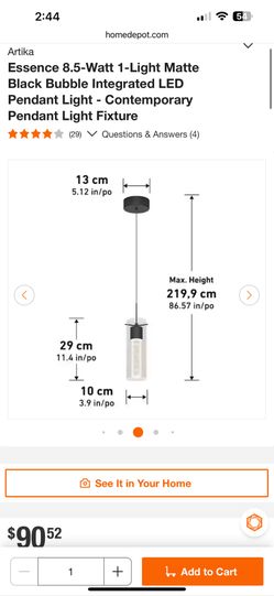 Artika Essence 8.5-Watt 1-Light Matte Black Bubble Integrated LED Pendant Light - Contemporary Pendant Light Fixture$49Lakeside, CA