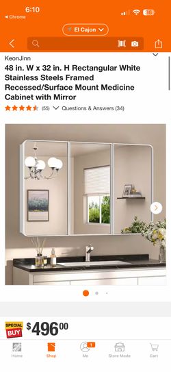 KeonJinn 48 in. W x 32 in. H Rectangular White Stainless Steels Framed Recessed/Surface Mount Medicine Cabinet with Mirror$270El Cajon, CA