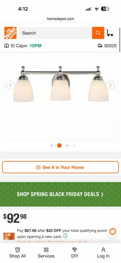 Hampton Bay Solomone 22 in. 3-Light Polished Chrome Bathroom Vanity Light Fixture with Opal Glass Shades$45El Cajon, CA