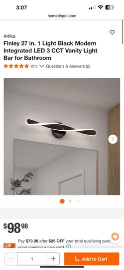Artika Finley 27 in. 1 Light Black Modern Integrated LED 3 CCT Vanity Light Bar for Bathroom$50Lakeside, CA