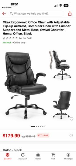 Okak Ergonomic Office Chair with Adjustable Flip-up Armrest, Computer Chair with Lumbar Support and Metal Base, Swivel Chair for Home, Office, Black$85El Cajon, CA