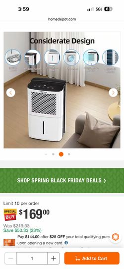 Edendirect 38 pt. 2000 sq. ft. Portable Dehumidifier in White with 8.03 pt. Bucket, Auto Defrost, Anionic Air Mode, 2-Fan Speeds$89El Cajon, CA