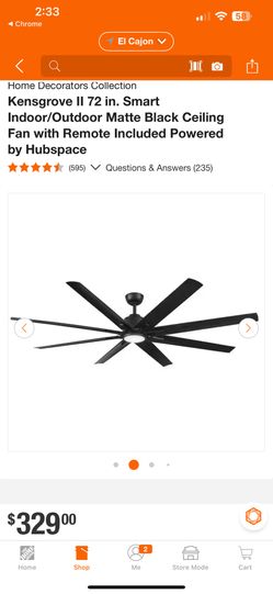 Home Decorators Collection Kensgrove II 72 in. Smart Indoor/Outdoor Matte Black Ceiling Fan with Remote Included Powered by Hubspace$210Lakeside, CA