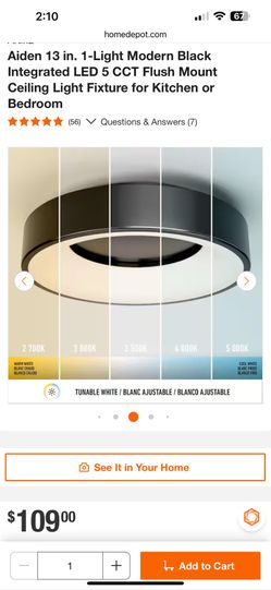 Artika Aiden 13 in. 1-Light Modern Black Integrated LED 5 CCT Flush Mount Ceiling Light Fixture for Kitchen or Bedroom$55Lakeside, CA