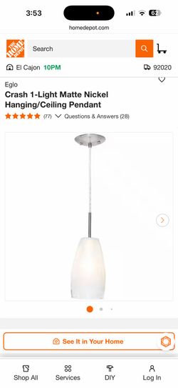 Eglo Crash 1-Light Matte Nickel Hanging/Ceiling Pendant$24El Cajon, CA