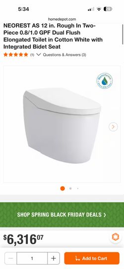TOTO NEOREST AS 12 in. Rough In Two-Piece 0.8/1.0 GPF Dual Flush Elongated Toilet in Cotton White with Integrated Bidet Seat$3,500El Cajon, CA
