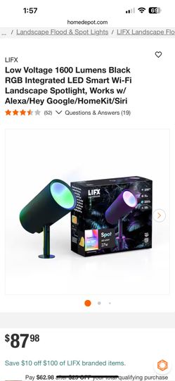 LIFX Low Voltage 1600 Lumens Black RGB Integrated LED Smart Wi-Fi Landscape Spotlight, Works w/ Alexa/Hey Google/HomeKit/Siri$49Lakeside, CA