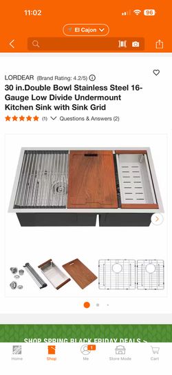 LORDEAR (Brand Rating: 4.2/5) 30 in.Double Bowl Stainless Steel 16-Gauge Low Divide Undermount Kitchen Sink with Sink Grid$180El Cajon, CA