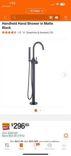 Glacier Bay Dorind Single-Handle Freestanding Tub Faucet Floor Mounted with Handheld Hand Shower in Matte Black$180Lakeside, CA