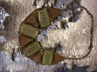 Green Snake Skin Print and Brown Gold-Tone Necklace $7Morrow, GA