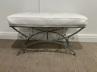 Antique Silver Bench w/White Pleather Reupholstery Reupholstered in White Tufted Pleather Hollywood Regency Style a few minor imperfections bc white 3$100Short Hills, NJ