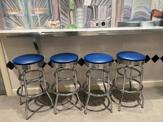 Blue Stools x 4 1970’s Richardson Stool Style Silver and Blue 15d x 29h x 21 spread Smoke free household$185Short Hills, NJ
