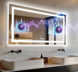 39"x24" Wall Mounted Lighted Restroom Mirror with Bluetooth Speaker and Digital Display - Dimmable Front Light Backlit Vanity Mirror Anti Fog with Mem$105Arcadia, CA