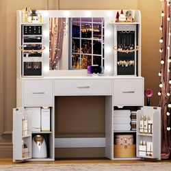 Vanity Desk with Rotating Jewelry Organizers, Makeup Vanity with Mirror and Lights, Dressing Table with USB-C Charging Station, 3 Drawers and 2 Cabine$155Arcadia, CA