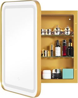 LED Medicine Cabinet Lighted Bathroom Mirror, Bathroom Vanity Mirror with 2 Storage Shelves, 24”x 16” Recessed Medicine Cabinet, Wall Mounted Deep Met$55Arcadia, CA