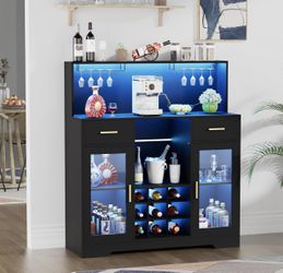 Coffee Bar Cabinet with Mini Fridge Space,Wine Bar Cabinets with Power Outlet&Led Lights, Home Liquor Cabinets with Glass Holder&Wine Rack, Modern Bu$125Arcadia, CA