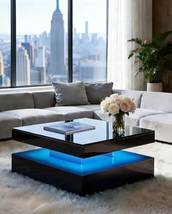 Modern Black Coffee Tables for Living Room - LED Coffee Table with Lights, High Glossy Minimalist Modern Coffee Table, 31'' Square Center Table $95Arcadia, CA