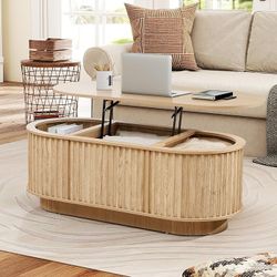 Oval Lift Top Coffee Table with Storage, 43.3”Mid Century Modern Center Table with Hidden Compartment, Fluted Wooden Lift Tabletop Dining Table for Li$100Arcadia, CA