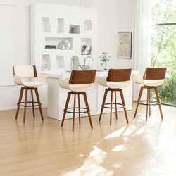 Beige Bar Stools Set of 4,26 Inch Bar Stools Counter Height,Swivel Counter Stool with Backs and Arm Rest,Faux Leather Bar Chairs, Mid Century Modern S$225Arcadia, CA