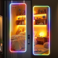 47"x15.7" LED RGB Door Mirror Full Length, Full Body Full Length Over The Door Mirror with Lights, Door Hanging & Wall Mounted Mirror for Bedroom, Liv$75Arcadia, CA