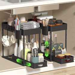 Black Under Sink Organizer, 2 Tier Sliding Cabinet Basket Organizer With Hooks (Brand New)$19Miami Gardens, FL