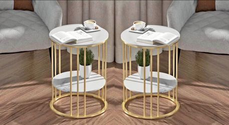 2 PCS 2 Tier Round White Sofa Side Table - Small Coffee Table with Golden Frame - Modern Bedside Nig$100Temecula, CA