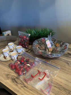 Apple Chandelier New, 3 Apple cups, 1 Apple saucer, 25 Apple knobs, 20 Apple Cabinetry Door Handlers and a Apple Napkin Holder $225West Palm Beach, FL