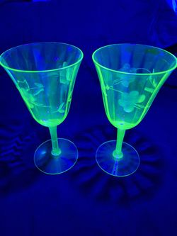 Vintage 1930s 2 Uranium Glass Wine Goblets – Etched Berry & Leaf – Likely Tiffin or Weston$39Odessa, FL