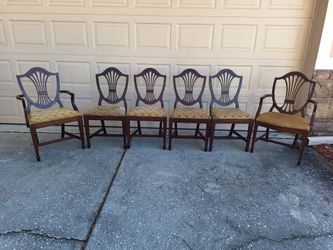 Vintage Mahogany Hepplewhite Shield Back Dining Chairs 6pc 4 Side+2 Arm$330Odessa, FL