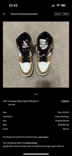 Used AJ1 Rokie of the year US 9$120Irvine, CA