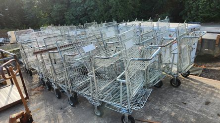 26) Heavy Duty Metal Shopping Carts From Retail Garden Center, Flip Up Top And Basket, 8" Solid Tires$50Aurora, OR